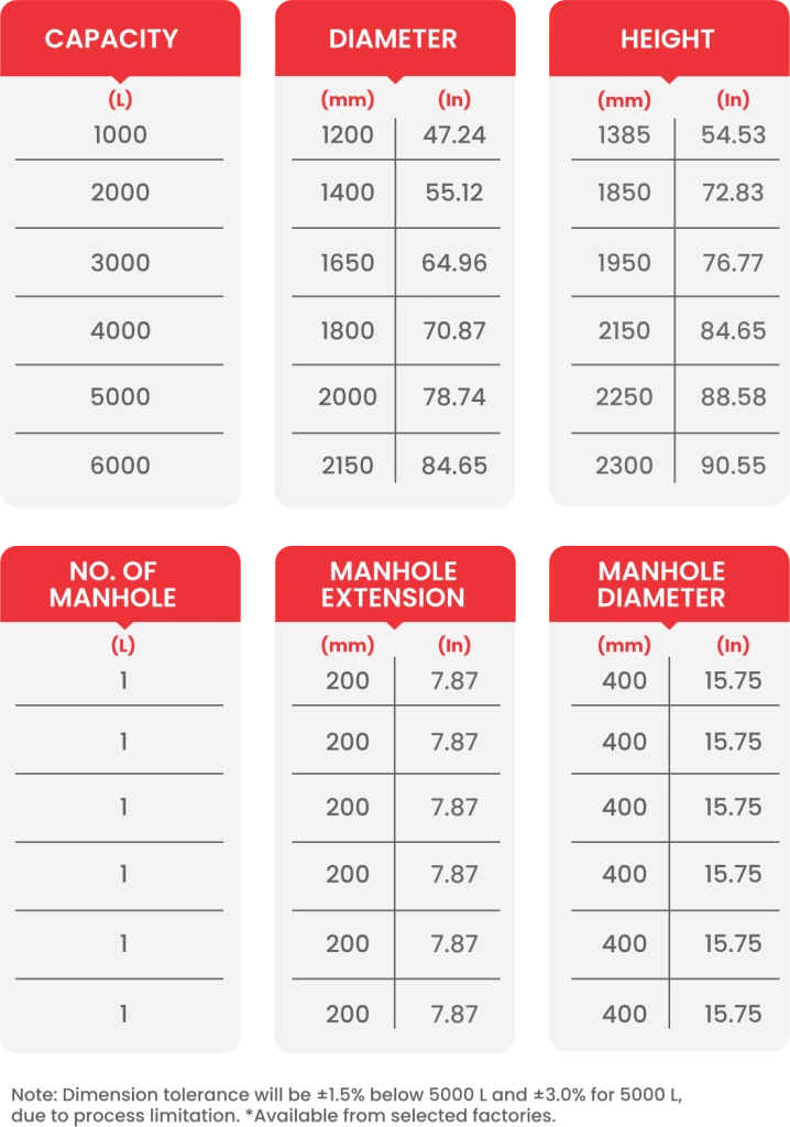 The underground tank is designed for durability and easy installation with a one-piece moulded design, eliminating seams or welds. Made from 100% food-grade virgin plastic, it is impervious to tree roots and resistant to UV damage. The tank is rustproof, leak-proof, and suitable for potable water. It endures earth pressure, is maintenance-free, and requires no additional retaining wall. With a 5-year warranty, it offers hygienic, economical, and long-lasting performance. FDA-approved and phthalate-free, it's ideal for underground applications.